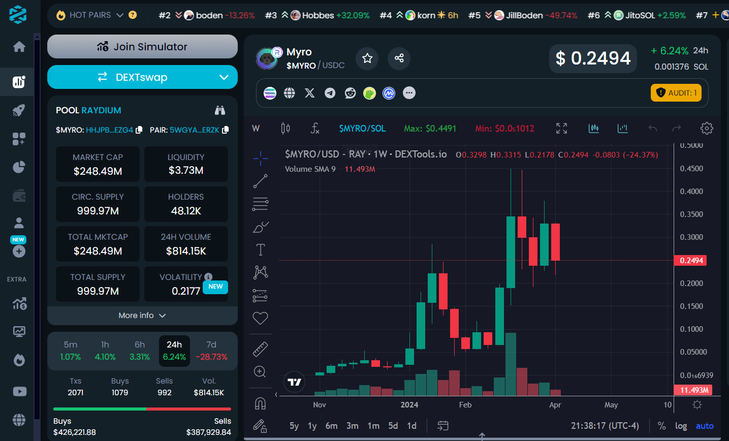 While creating value, the coin needs to be easily purchased. $MYRO is not easy to buy using my traditional methods of Coinbase. To buy $MYRO, it is suggested to use Kucoin.com. Since the launch of the meme coin in November 2023, it has been added to other exchanges using the Phantom Solana wallet.